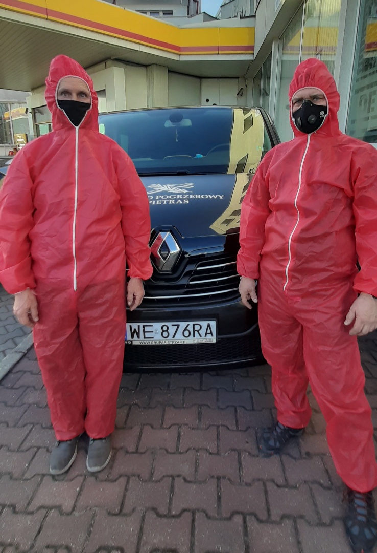 dezynfekcji samochodu – karawanu, środków ochrony indywidualnej dla obsługi pogrzebu