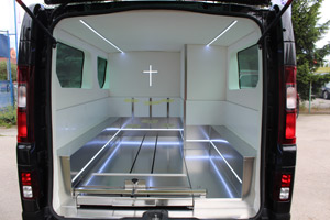 Jednym z ważnych elementów każdej uroczystości pogrzebowej jest dbałość o transport Zmarłego. Zakład Pogrzebowy PIETRAS dysponuje specjalistyczną flotą samochodową w skład której wchodzi elegancki autokarawan marki RENAULT TRAFIC z ekskluzywną podświetlaną zabudową. Nasz karawan jest przystosowany do przewozu osób Zmarłych , także na obszarze całej Polski i zagranicy. Samochód spełnia rygorystyczne normy wymagane w branży pogrzebowej. Dysponujemy również zespołem doświadczonych kierowców.